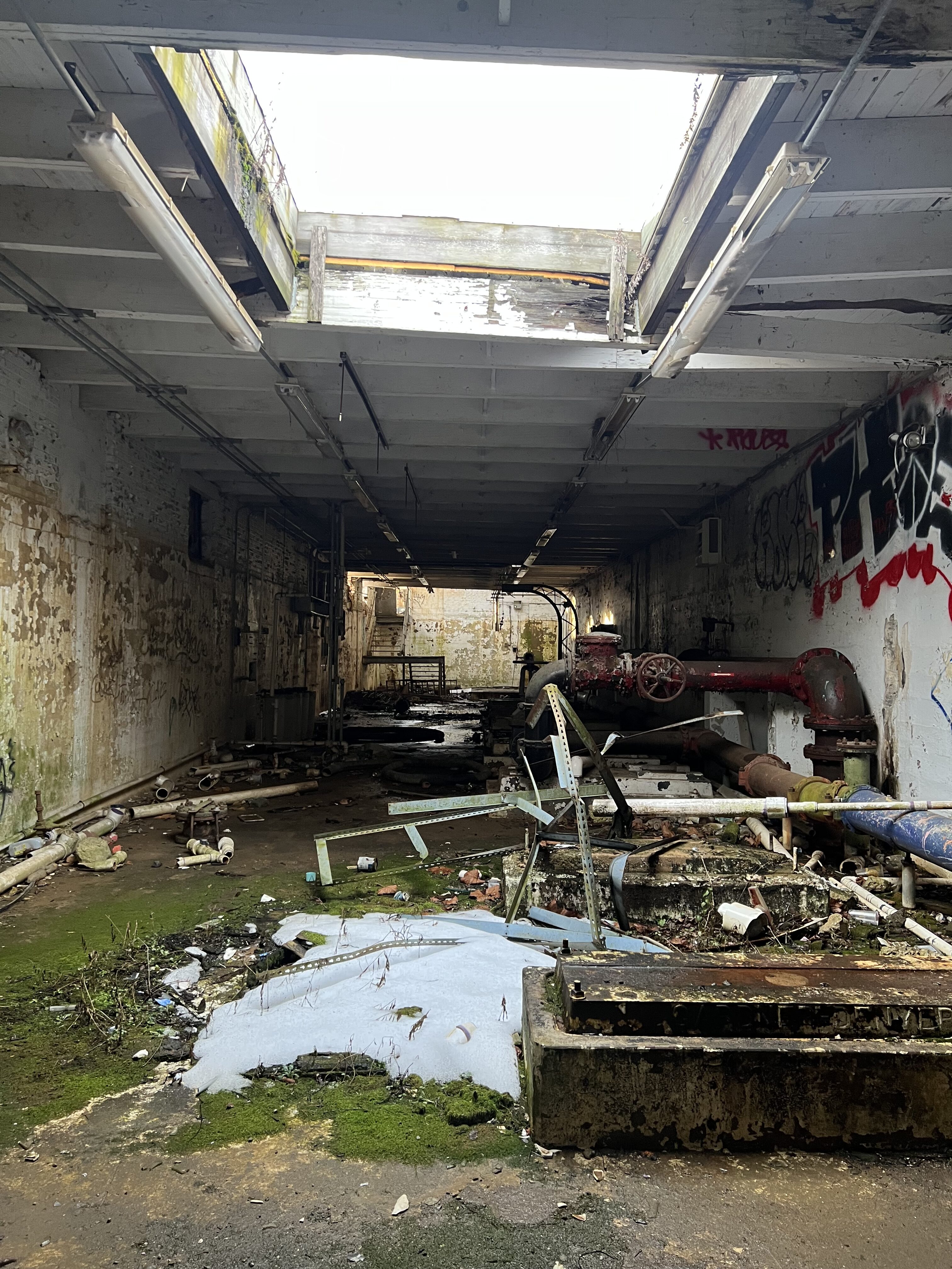 Ziemlich leicht zu erreichen, ein Gebäude in Wüstengröße, aber größtenteils leer, nur mit Graffiti und Müll