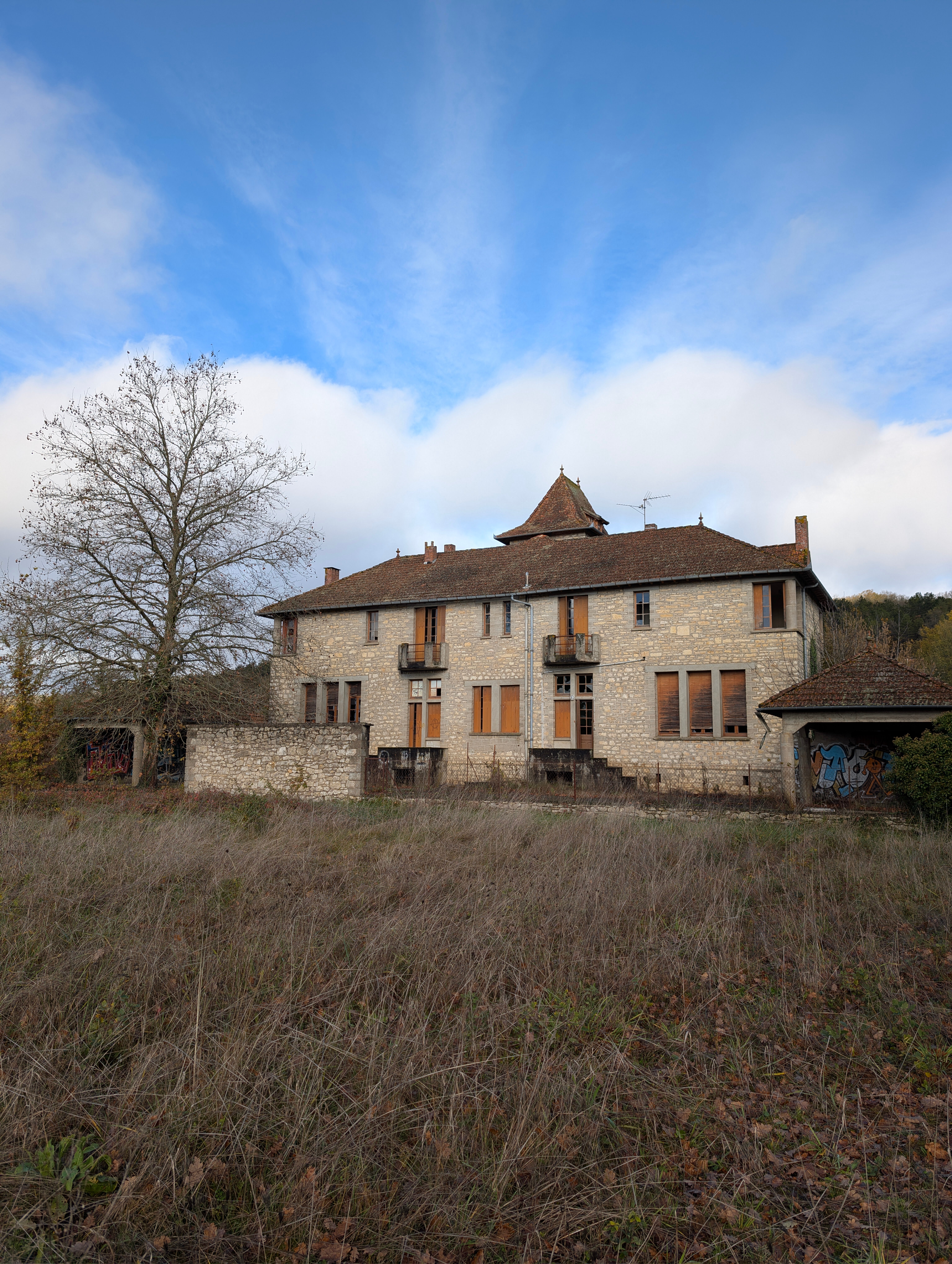Es ist eine alte, verlassene Schule an einer Departementstraße am Rande eines Dorfes im Südwesten Frankreichs. Es gibt nur ein zweistöckiges Gebäude. Der Ort ist gut erhalten, aber innen leer. Der Zugang erfolgt über Felder; es gibt keine “Zutritt verboten”-Schilder, alles ist offen. Bitte respektiere den Ort, sei unsichtbar
