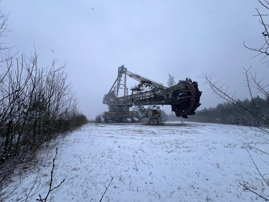 Der Bagger 1473, der den Spitznamen “Blaues Wunder” trägt, ist ein riesiger Schaufelradbagger aus DDR-Zeiten, der als Industriedenkmal auf einem Feld in der Nähe von Schipkau, Deutschland, steht. Die 3.850 Tonnen schwere Maschine wurde 1964 gebaut und war bis 2002 in der Braunkohlegrube Meuro im Einsatz, bevor sie stillgelegt wurde.