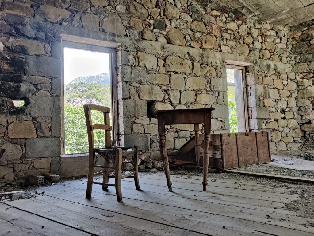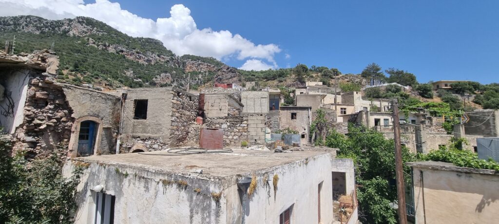 Verlassenes Dorf in den Hügeln von Kreta, Sizilien. Es sieht so aus, als hätten die Menschen es eilig gehabt, das Dorf zu verlassen, aber es hat mehrere Jahre gedauert, bis es wirklich verlassen war. Es leben noch ein paar Menschen dort, aber der größte Teil des Dorfes ist verlassen. Es gab Pläne, einen Damm zu bauen, aber er wurde nie errichtet.