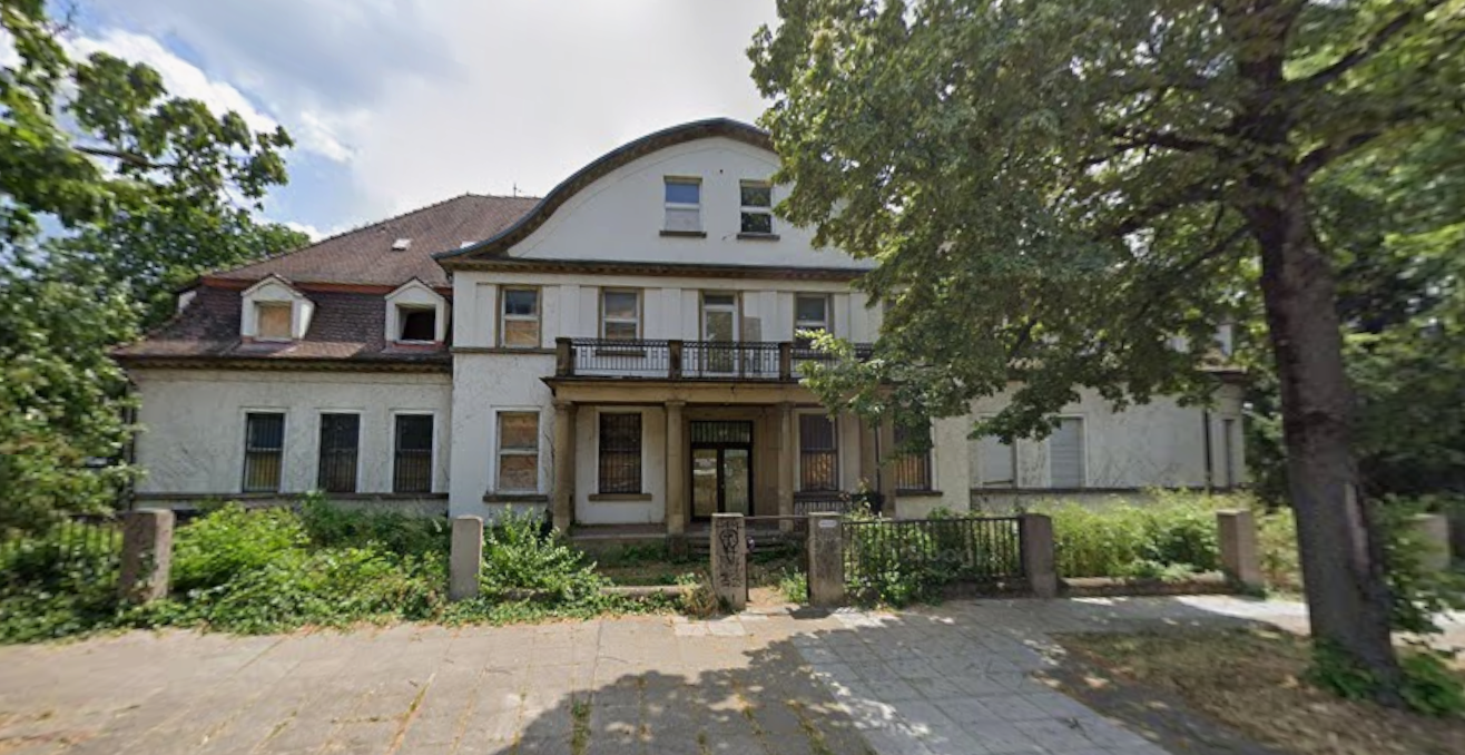 Ehemaliges Offizierskasino in Stuttgart-Bad Cannstatt, das seit Jahren leer steht und zugewachsen ist.