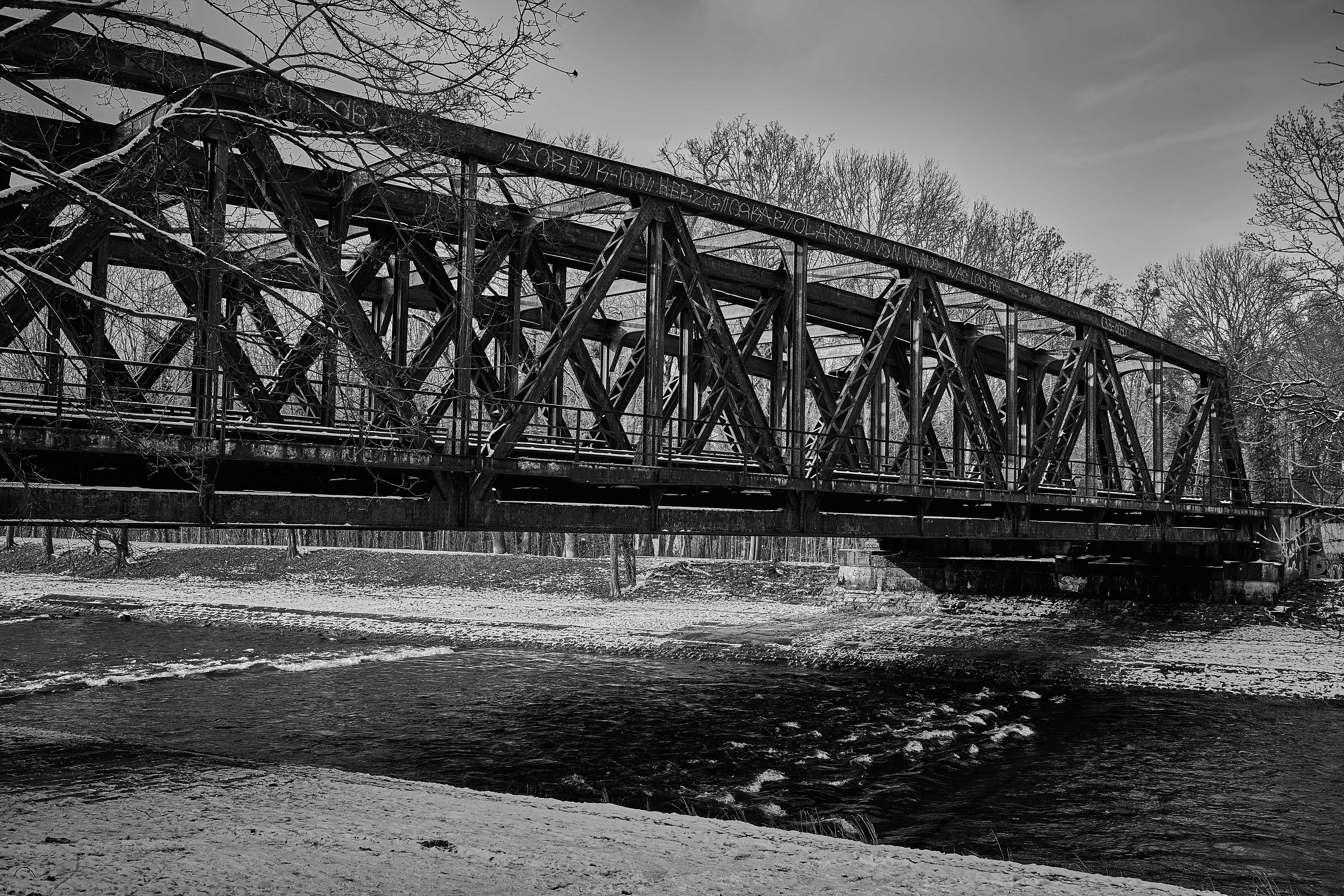 Alte Eisenbahnbrücke zwischen Deutschland und der Schweiz. Ziemlich guter Zustand, obwohl rostig und mit Patina.