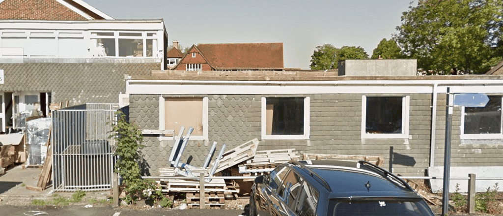 Stadtlage in petersfield, UK, mit Brettern verschlossen, aber leicht zugänglich.