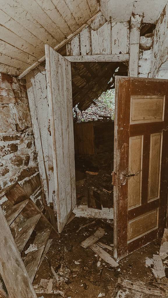 La casa è nascosta dietro gli alberi vicino alla strada e l'accesso è piuttosto facile. È stata abbandonata per molto tempo, ma all'interno ci sono ancora molti effetti personali.
