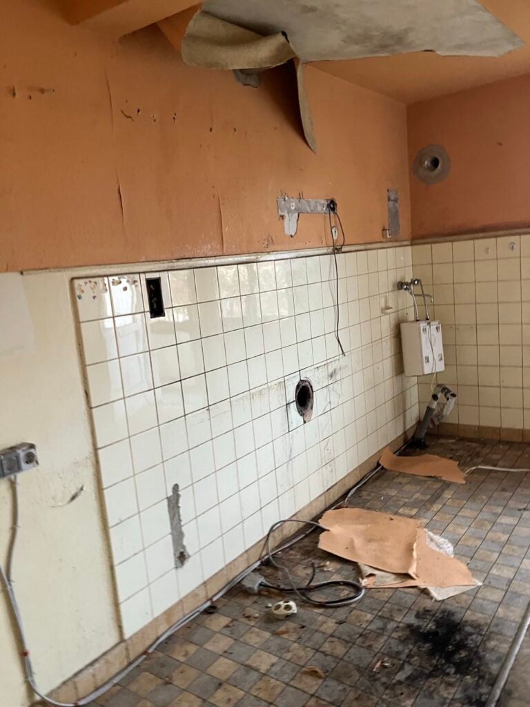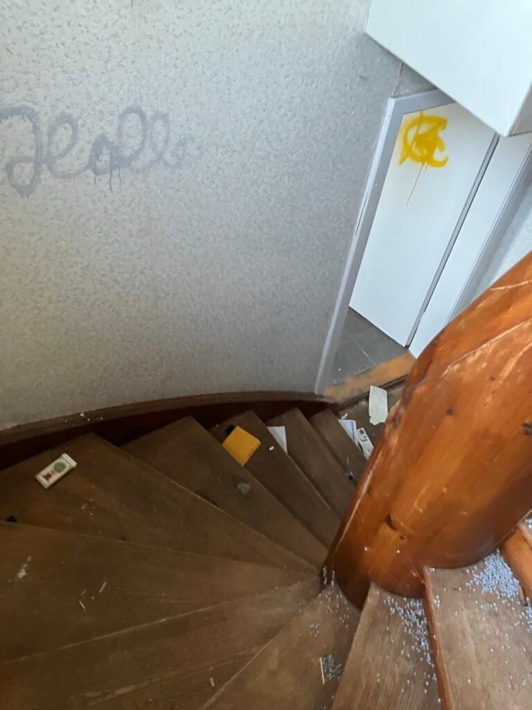 È una casa, ma dentro non c'è più niente. Puoi entrare da una finestra dietro l'entrata del garage.