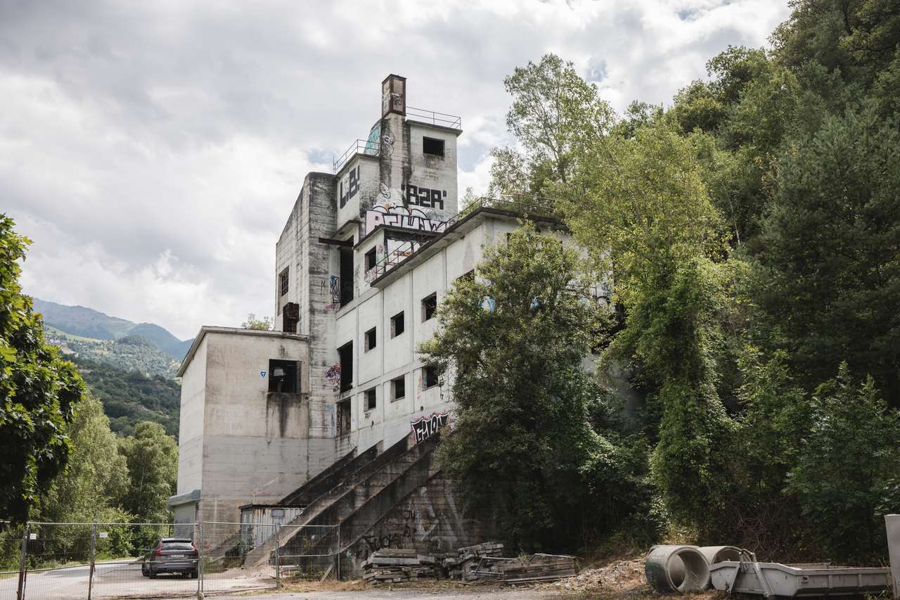 Questa fabbrica di ghiaia è abbandonata da oltre 50 anni. Puoi entrare dal lato destro attraverso la recinzione. All'interno puoi salire fino alla cima della fabbrica. Ci sono molti graffiti all'interno e all'esterno.