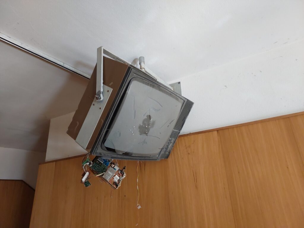 The hotel is not secured by cameras but the windows are blocked, but you can enter through the back door. The hotel is still quite well equipped, it is definitely worth a look.