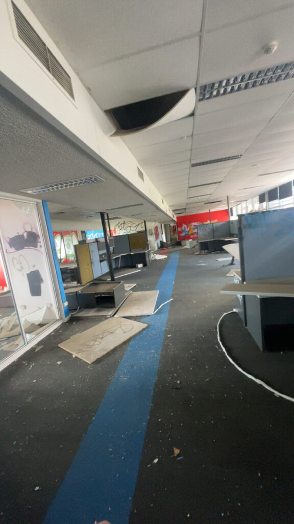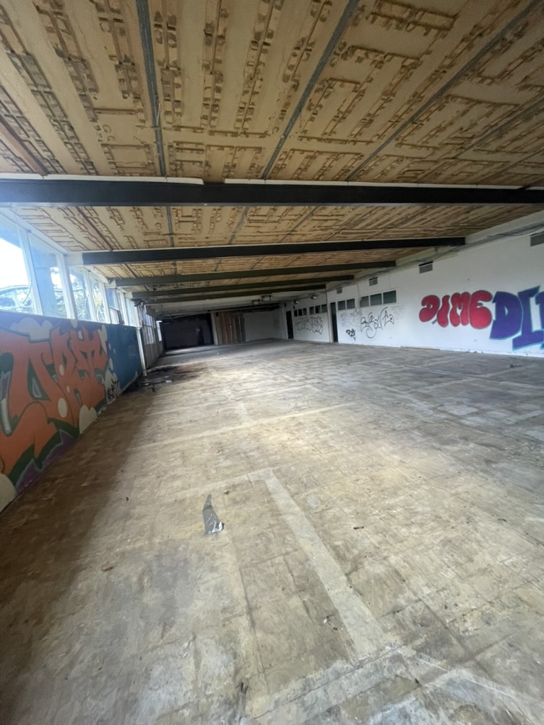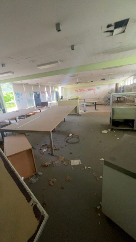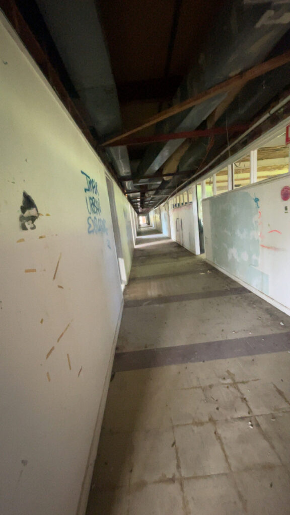 I believe it was built in the 60s, pretty solid place not very sketchy but completely cleaned out. at the front has lots of cameras but you can dodge them if you climb under the fence (thats barbed on the top so u cant climb under) from a side road on the left of the property. tho it is a pretty small gap. once your inside you shouldnt have to worry about cameras. you could also go in from the front through a hole in the fence but the cameras will see you.