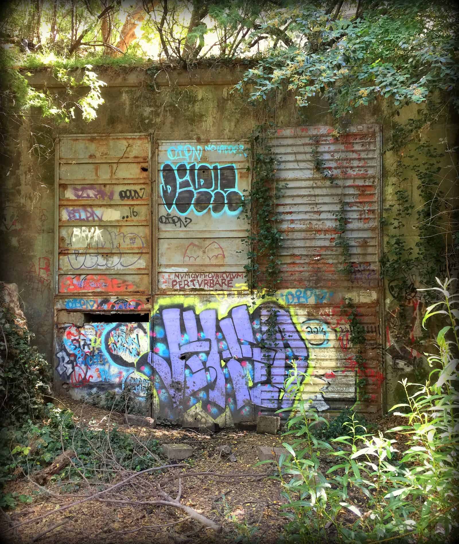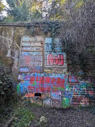 A brief hike away from the road leads the the covered entrance to an abandoned train tunnel with a small gap to enter.
