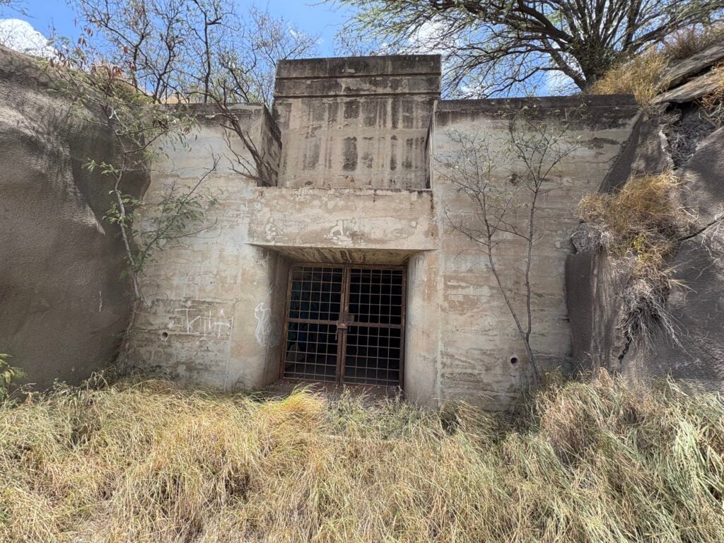 Abandoned military bunker, hard to access without lock-picking tools or boltcutters because they recently put a chain-lock on the main gate. Build in the late 40s, it used to be a costal defense battery, the turret that used to be there was taken off of a major U.S battleship (U.S.S Arizona). There is not much security here, but it is located between a garbage dump and an incineration plant. There is a fairly modern building in the center, it has cameras and potentially a surveillance station.