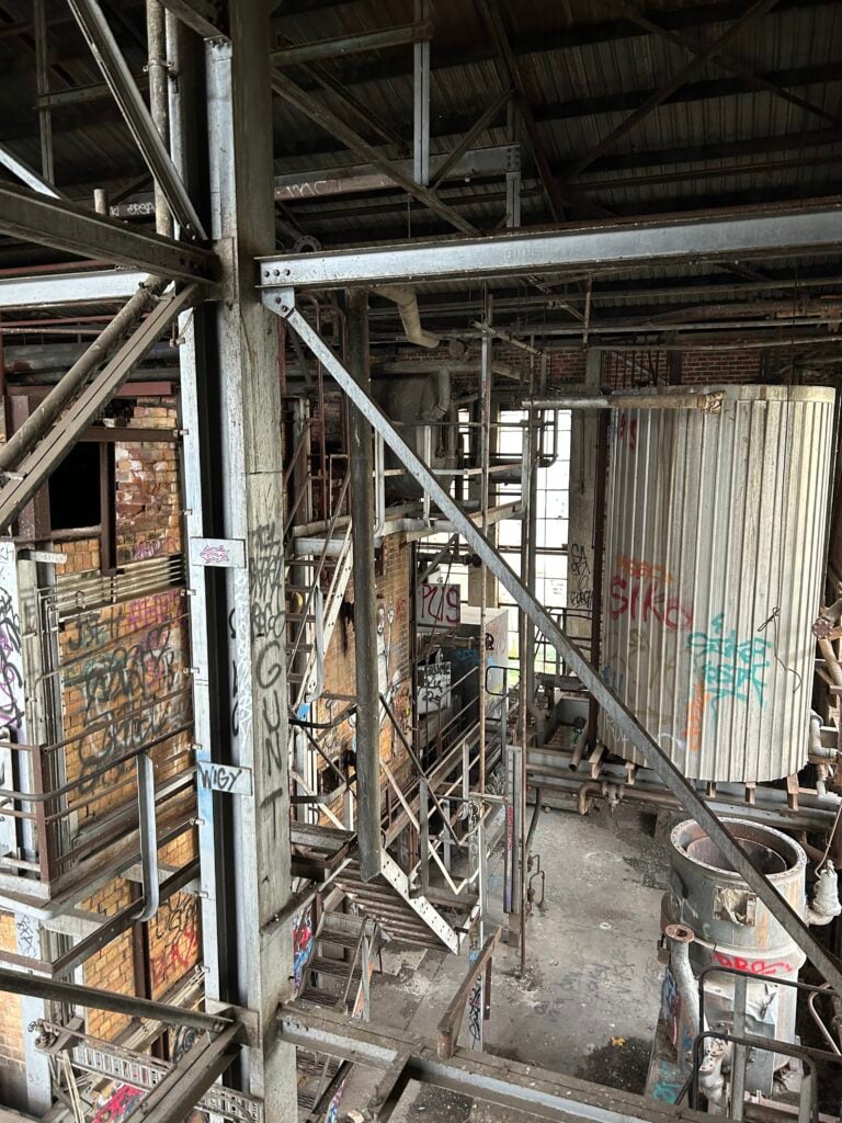Workers are around occasionally because of some fix up they are doing, but not often and close to the main building— plus it’s really easy to get in. It’s a large factory complex that can be unsafe in multiple areas unless you know where to go.