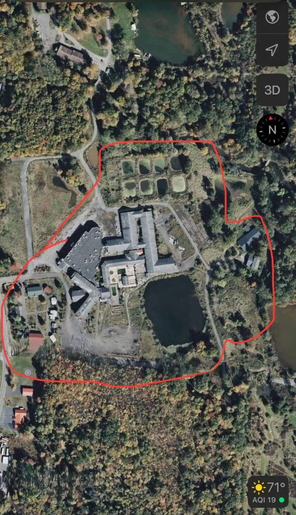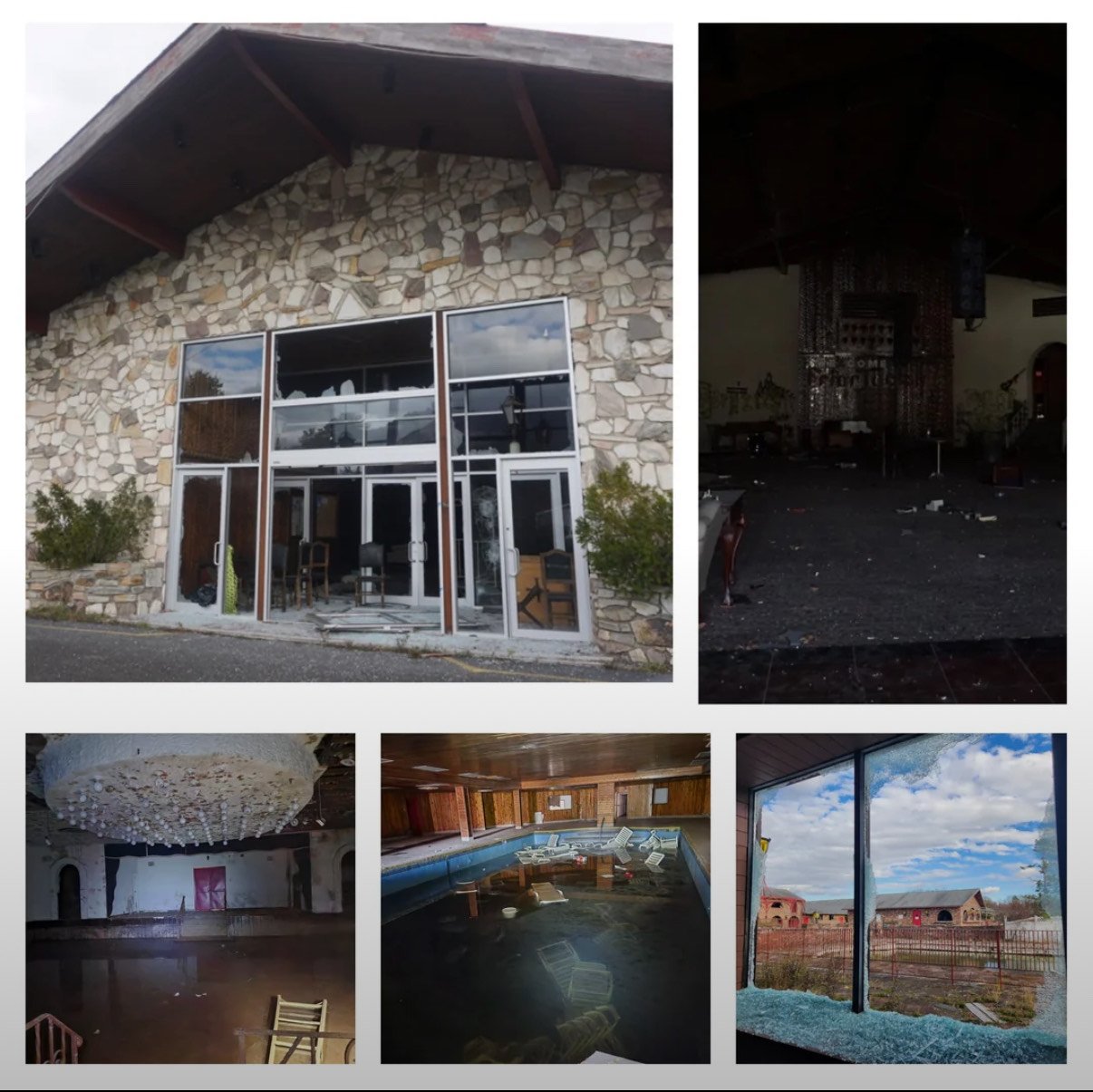 an old 19th century hotel/resort. 2 acres full of hotel rooms theaters pools and plenty more every from chairs phones to documents all left to rot. would recommend wearing a mask the mold and aspestis isn’t the best