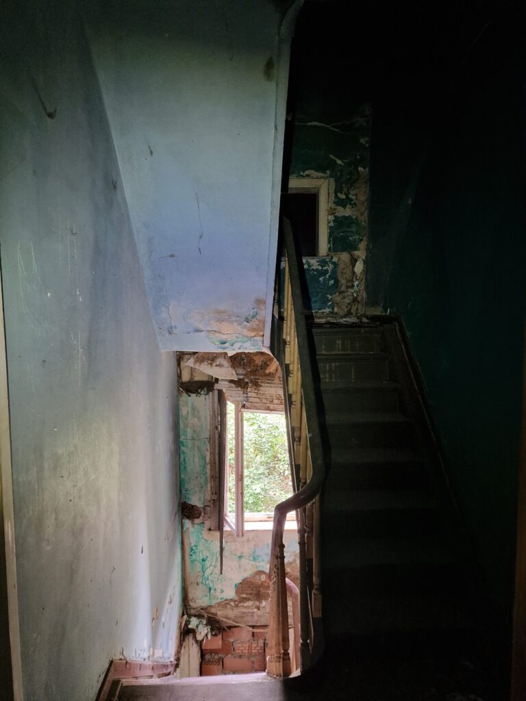 The house is fully abandoned and there is no security measures other than barricaded windows/doorframes on the 1st floor. There are 3 floors, though the access to the first floor can be pitiful due to collapsed ladder and dust.
