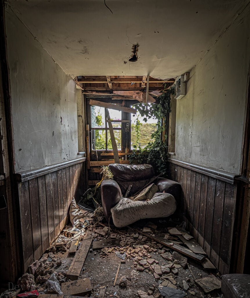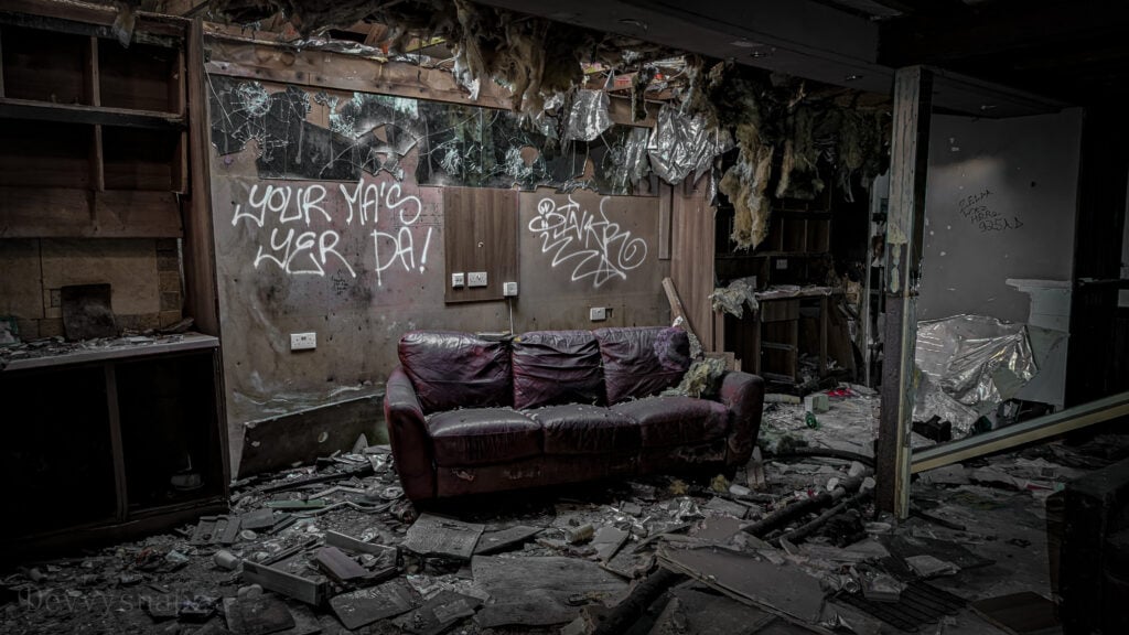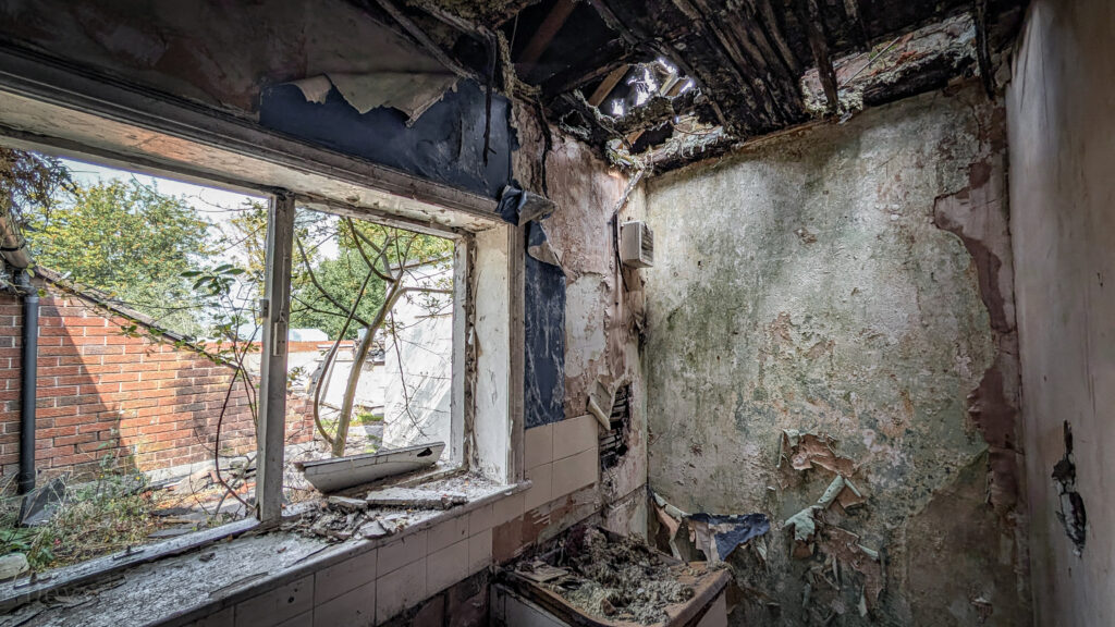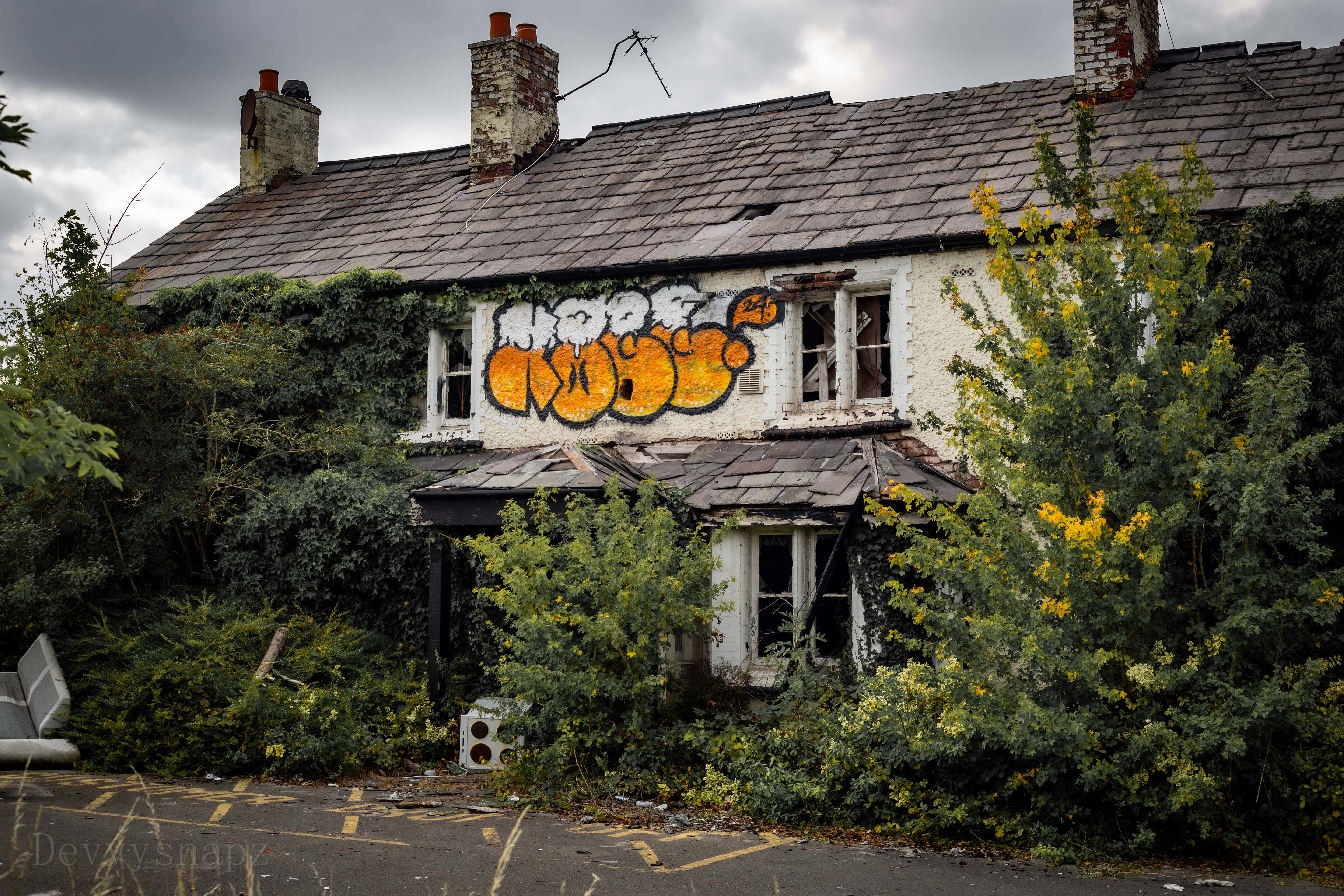 Abandoned and derelict pub left to decay for many years after land ownership dispute. The pub is in a very bad state with a flooded basement and rotten floors on all levels. Easy to access. However signs of rough sleeping are obvious. Wear sensible footwear and take torches and be vigilant of any squatters/homeless people that may or may not be there.