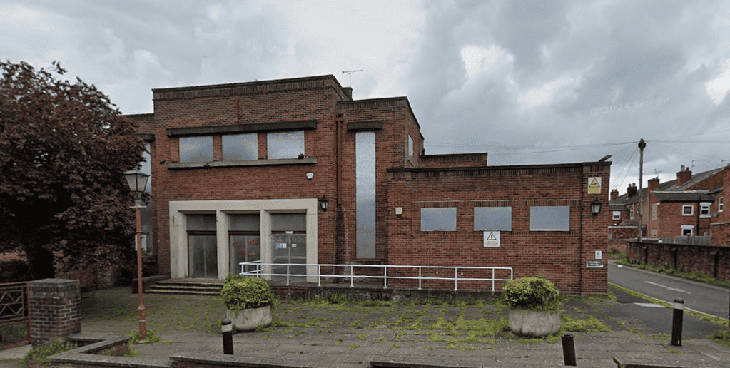 swimming pool with changing facilities, offices and pumps/filtration equipment