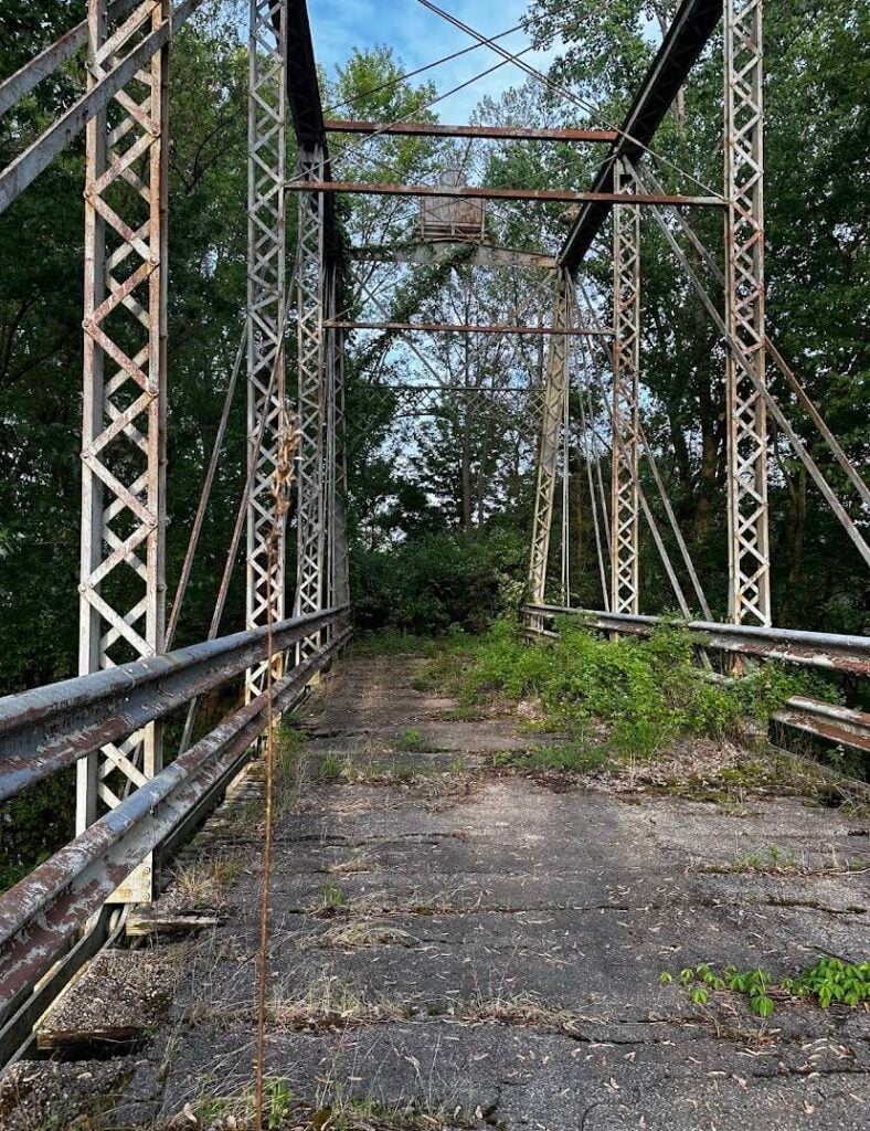 Fit condition, overgrown but fairly cool. No security as public can access this area but still is a very old metal structured bridge.