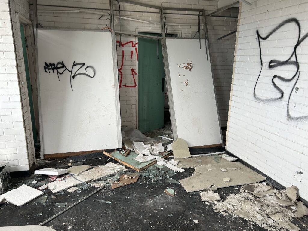 Next to the old chemical plant that produced phenol, not too big but easy to get into. The massive shed there is a fu n place to hang out with a group of friends.