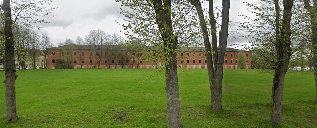 An old solder barrack from ww2 in the town of Kalvarija found next to apartment buildings.