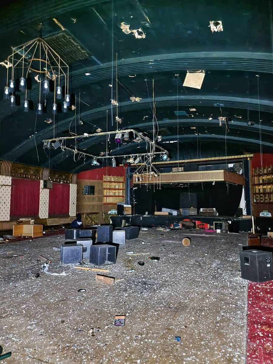 Floor is very glassy due to the bar been all smashed up and very moldy. everyone seems to think you can’t get inside due to the recent police raid thing with the drug growing in the ceiling but it’s actually easier than ever to get in. ( you go go down the gravel slope and over a fallen fence then just go through this big plank of wood for a door)