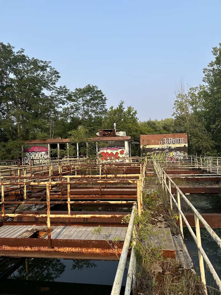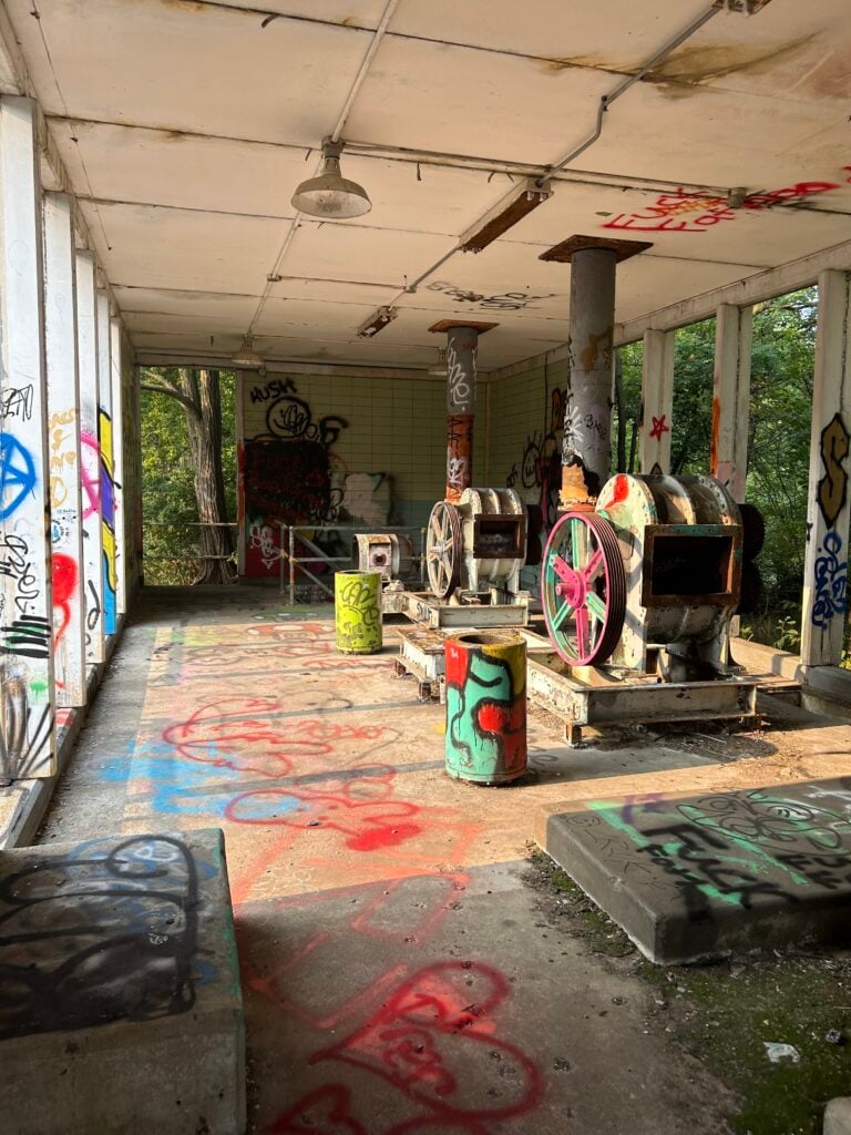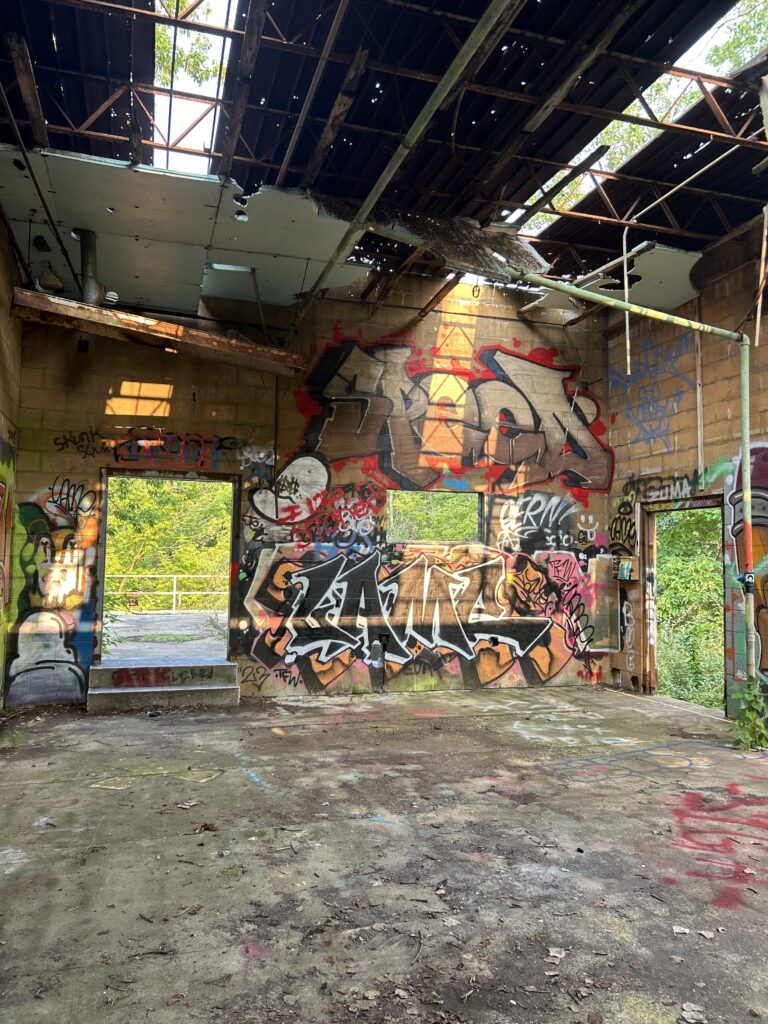 never seen cops around here, cool little spot with easy access thru an open gate and some dope art, definitely a daytime spot as there are homeless people living in the buildings surrounding the plant. from my experience they won’t bother you unless you’re shining your lights everywhere at night. there’s a cemetery up the road that has a few very small abandoned cemetery buildings as well, not as interesting but still cool