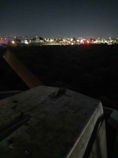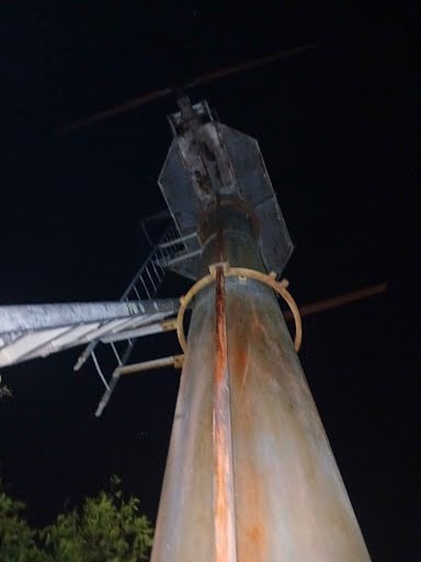 Old windmill in an orange patch, right by falcon field. Ladders lead to top and planes fly right above you as they land